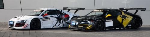 Wie nebenstehendes Bild zeigt, wird die Lackierung der beiden Audi R8 LMS von Phoenix Racing beim 12-Stunden-Rennen von Bathurst eine Hommage an das Gastgeberland sein - rechts das Fahrzeug von Mies / Jöns / O'Young ("Kangaroos next 6km" - in Anlehnung an die 6,2 km Länge des Mt. Panorama Raceway), links der Wagen der Australier Lowndes / Luff / Eddy (mit Darstellung eines Red Back Spider).