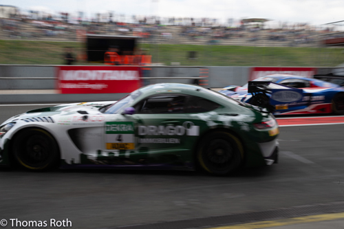Der Start erfolgte pünktlich und wie am Vortag ohne Probleme. Jules Gounon im Drago ZvO Mercedes-AMG #4 schaffte es gleich nach der ersten Kurve, sich an Polesitter Patric Niederhauser im Rutronik Audi #15 vorbei auf P1 zu setzen. Auch dahinter gab es genügend Action. Nicky Catsburg im neuen Schubert BMW M4 GT3 #20 überholte gleich drei Fahrzeuge und setzte sich auf P4.